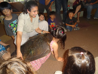What a great place for a party! I love the photo of Mira with the turtle shell. And the photo of her blowing out the candles is classic!