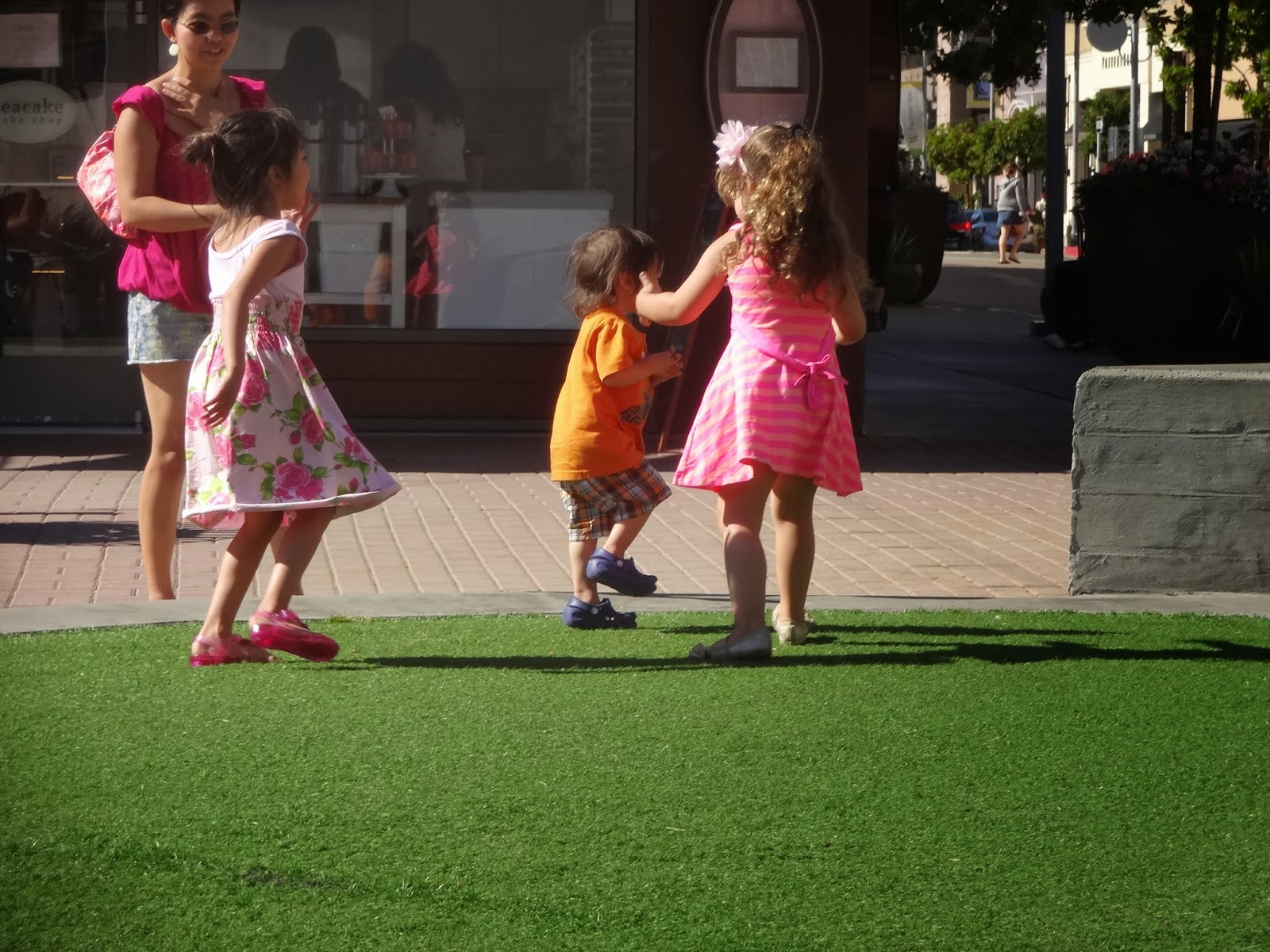 Bay street is such a fun place to meet for a few hours to let the kids play. While we love going to people's houses or having them over, its nice to also not have to worry about cleaning up before or after a play date. And when its so easy to entertain the kids for hours reading books, doing puppet shows and dancing in the courtyard, why not let them run around in the summer sun and chill with a Starbucks at Bay street while they play.